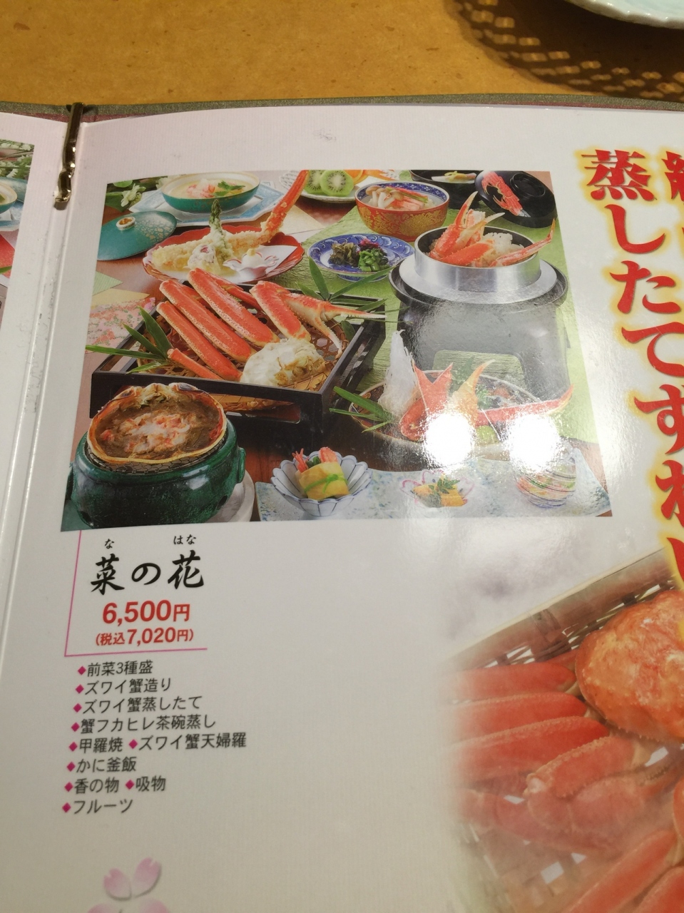 蒸しカニが食べたかったので、カニ懐石菜の花7000円を選択。