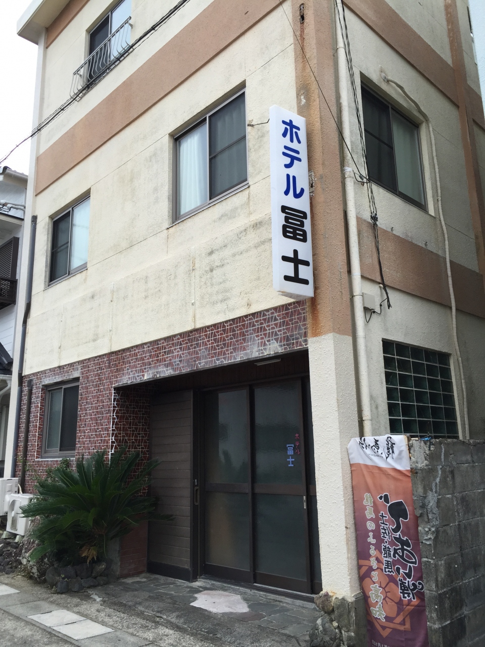 ホテル冨士の看板を見付けたが、建物も真っ暗。裏口かと思ったが、そこが入り口。