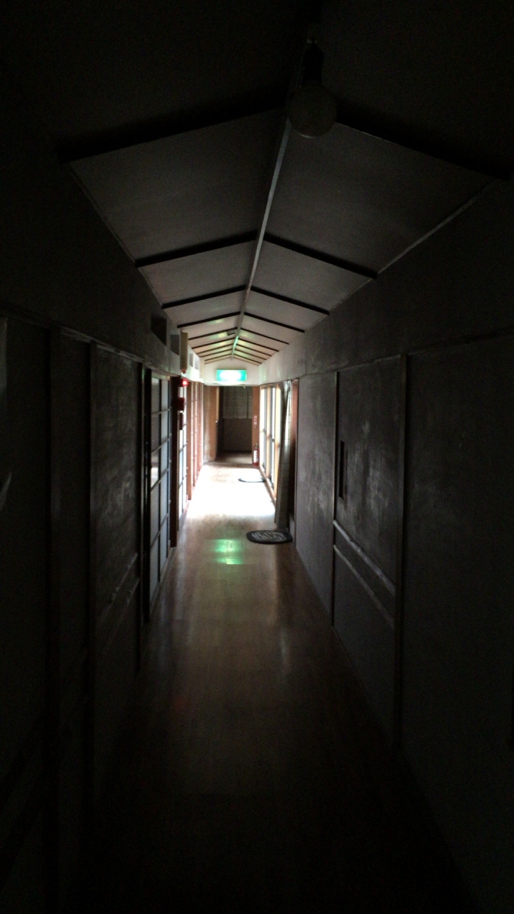 恐る恐る中へ。薄暗いフロントで白紙に記帳。