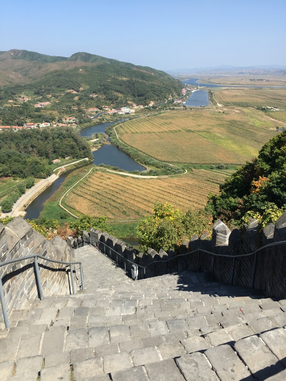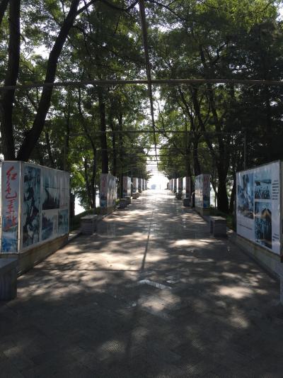 丹東から国境沿いに約1時間程で到着。途中沢山の桃山や栗山がありました。河口断橋周辺には沢山の魚料理店がありました。