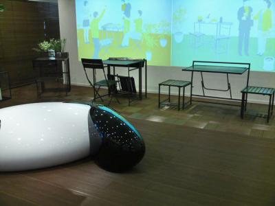 Club ESTA は、アウトドア用品やガーデン用品のショールームで、店内に展示されているほか、カタログでの注文も勿論出来ます。11月4日までデザイン展示があったので、あと少しリーゼントの顔のオブジェに座れます。ここで、注文すると、配達料金が無料です。その上、コーヒー等のサービスやお子様向けにマスコットの顔の金太郎飴のサービスもあります。