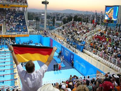世界中から人が集まり街中も会場も応援で盛り上がります。女子水泳の表彰式...
