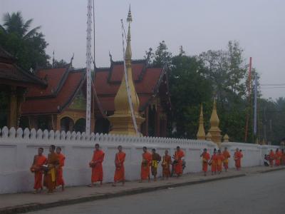 翌朝早起きをして托鉢を見に行く。凄いとは聞いていたけど、本当に凄い数の...