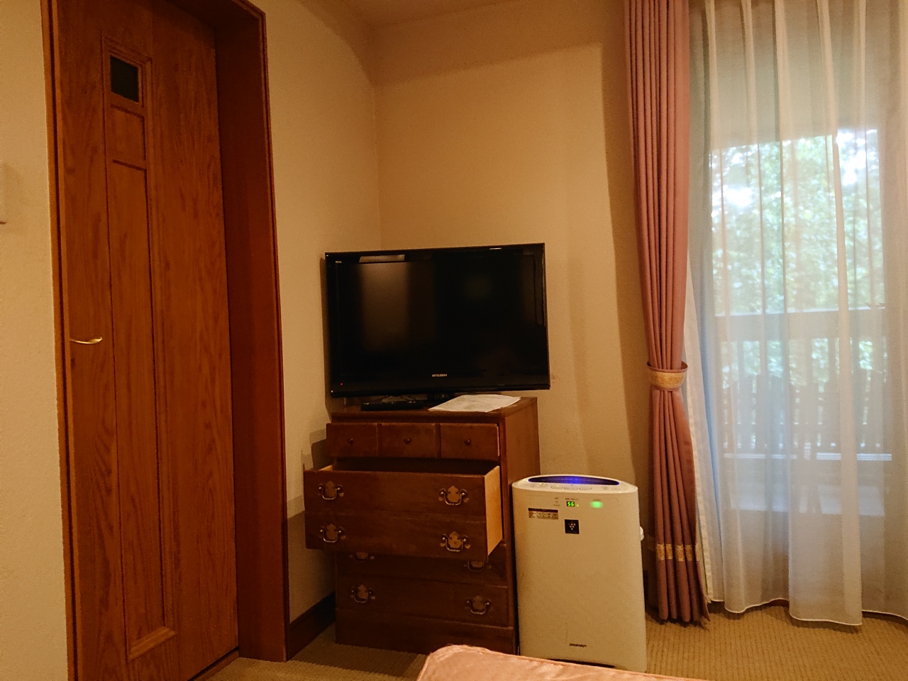 部屋の入口側に窓があるので、人通りが気になりそうでしたが、大きなホテルではないからか、それほど人が通るわけでもなく、ブラインドで調節出来るので問題ないです。