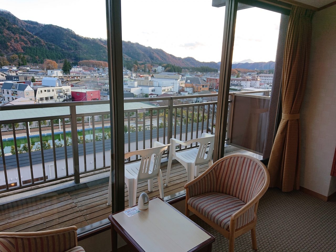 小さなバルコニーがあり外に出られ、景色を楽しむ事が出来ますが、
