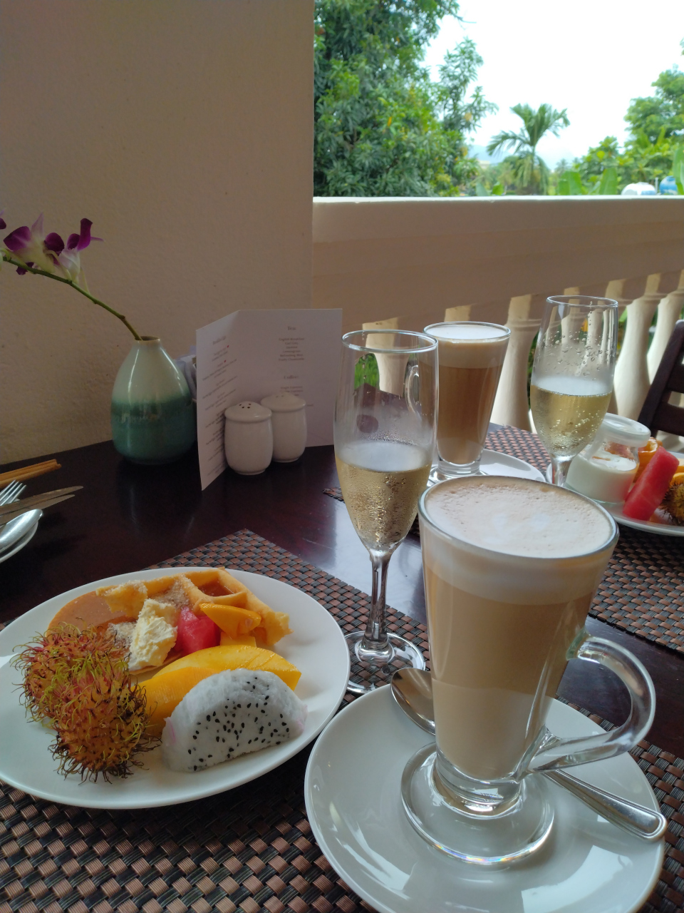朝食では、フォーなどのベトナム料理、卵料理やパン、フルーツなど十分な種類がありどれも美味しく頂きました。スパークリングワインもありましたよ!