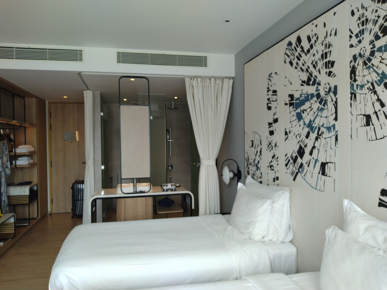 ツインのシティビューの部屋で、とてもシンプルな感じでリゾート感はないですが、観光目的のお宿ならば良いと思います。