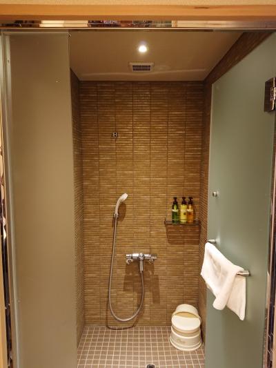 バスタブはないですが、シャワールームがあります。ボディーソープなども付いていましたが、リンスインシャンプーだったのが残念でした。