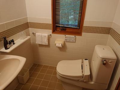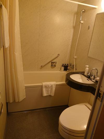 一般的な客室ですが、ユニットバスにしてはやや広々としていました。