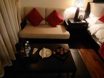 部屋は、ベットとソファーのスペースが階段で分かれていて広々としていました。