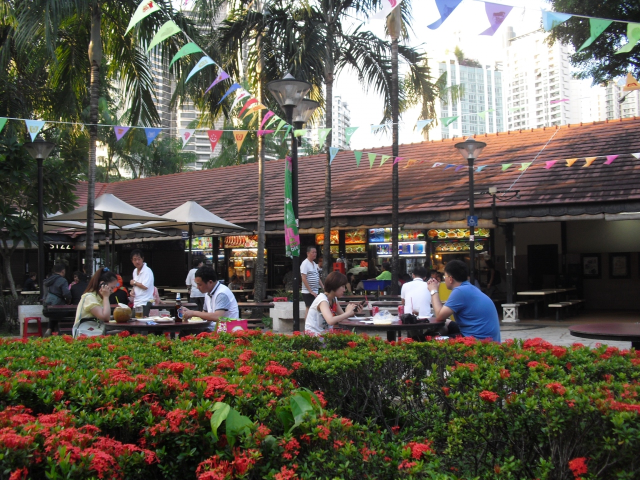 初めてのシンガポール旅行で、食事はホーカーズを選んで食べてきた我が家です。こちら以外のホーカーズも、もちろん大変おいしくいただくことができました。でも、ここ【ニュートン・フードセンター】の、他と全く違う点は「清潔感」と「開放感」!!