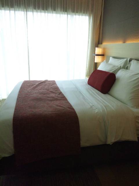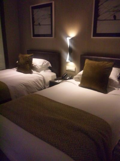 オフイシャルの客室写真ですと、とても狭いのだろうなぁと覚悟をしていましたが、ベッドもそんなに小さくはないし、良く眠れました。