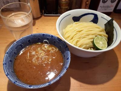 11時の開店直後に訪問。先ずは店外の券売機に。つけ麺は950円から。久々の訪問だが、少し値上げしたかも。時間が早かったので、並ばず席に。濃厚なつけ麺は相変わらずの美味しさ。スダチと黒七味がアクセントになり、最高でした。