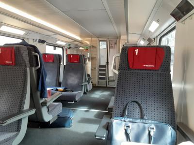 チューリッヒからミラノの約3.5時間を1stクラス利用で移動しました。室内はきれいで清潔。トイレもきれいでした。スイス内は正確なスケジュールでしたが、イタリアに入ったとたんに電車が遅延。この差は笑えるくらいの恒例行事との印象です。国境駅では、パスポートチェックの係が巡回しますが、数人に一人がチェックを受ける感じで、かなり適当でした。