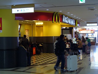 チェックインカウンター奥にあるエスカレーターで上階に登ったところにあります。店構えや内容は通常のマクドナルドと同じです。スーツケースを持った人も利用し易いように、通路が広く取られていて、開放感があります。
