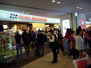 出国審査後、ナリタ5番街の奥にある、日本のお土産や名産品、漢字が書いてあるTシャツなどを中心に扱うショップです。必然的に、外国人旅行者が多数利用しています。レジは、いつも店外にまで列ができていて、人気があります。