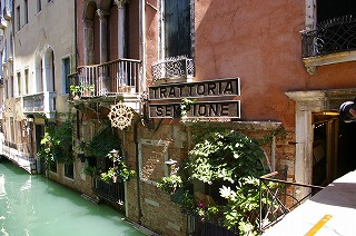 ランチで2回訪れました。サンマルコ広場~リアルト橋間にあります。窓際のテーブルからは、行き交うゴンドラを眺めながら食事を楽しめます。日本語メニューもありました。スタッフも親切で、注文もし易かったです。料理も美味しかったです。ベネチア名物のクモガニを使ったスパゲティもあり、絶品でした。