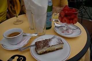 シニョリーア広場に面したカフェです。私たちが訪れたのは8月の酷暑時だったので、カフェには午後の利用がお勧めです。というのも、テラス席が日陰になってくるので、適温下で眺望を楽しみながら、優雅なカフェタイムを過ごせるからです。
