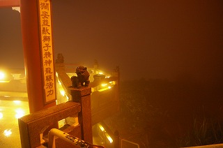 残念ながら、このときは霧がかかってしまい、頂上から眺望は楽しめませんでした。ただ、中腹まで下りてきたところからでも、薄霧越しに美しい夜景が見られたので、頂上で天気が良ければ、さぞ綺麗な景観だと思われます。そういった意味では、天気に注意して訪れた方が良いかもしれません。