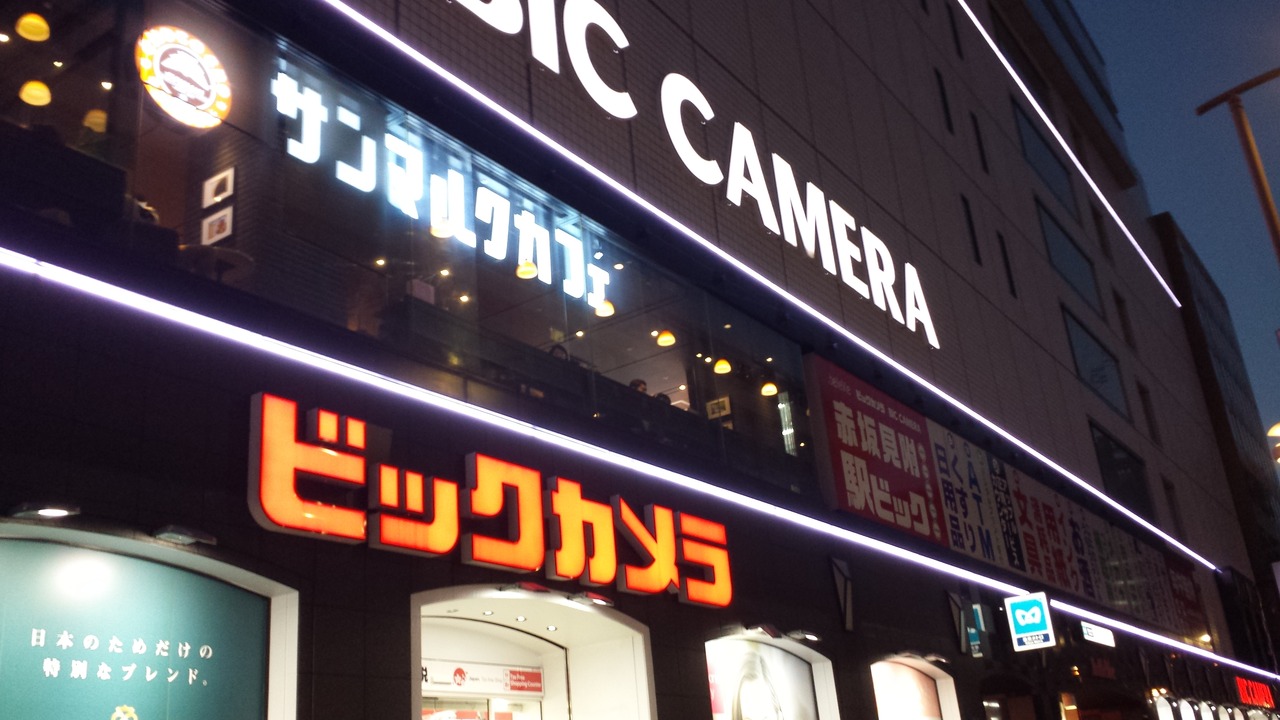 東京メトロ銀座線/丸の内線の赤坂見附駅真上にある、駅直結のビックカメラ。ご存知、都市型の家電量販店です。好立地にもかかわらず、店舗床面積は広く、品揃えは相当に充実しています。夜も22時まで空いていて、利便性高いです。