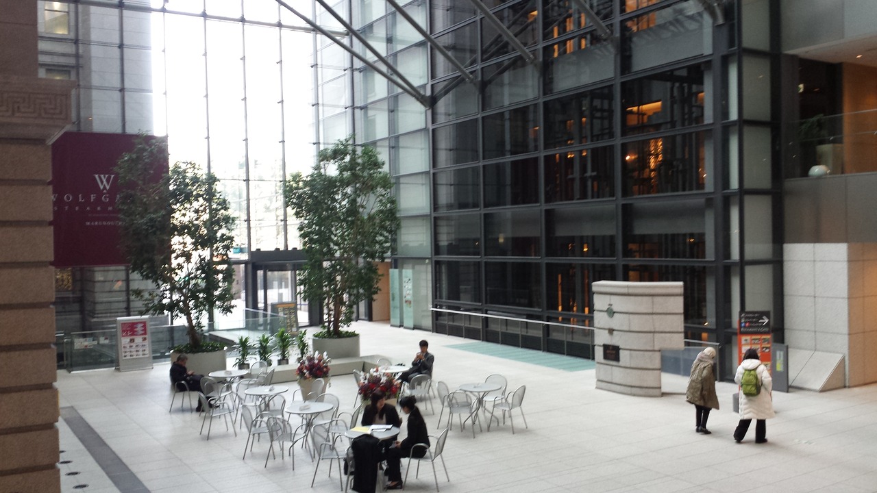 東京駅の丸の内南口から、地下道で直結しています。雨でも濡れずにたどり着けます。奥側は、TOKIAに続いています。日本郵便のオフィスビルですが、下層階や地下のエリアには、レストランやコンビニ、ショップが入店しています。