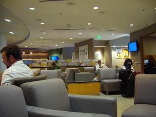 空港は天井も高く、採光部分も多いので、明るくきれいです。レストランやショップも連なっています。今回は、アメリカン航空のラウンジ、アドミラルクラブも利用しました。入り口でバーでのドリンク一杯券ももらえます。コーヒーやクッキーは無料で提供されていました。