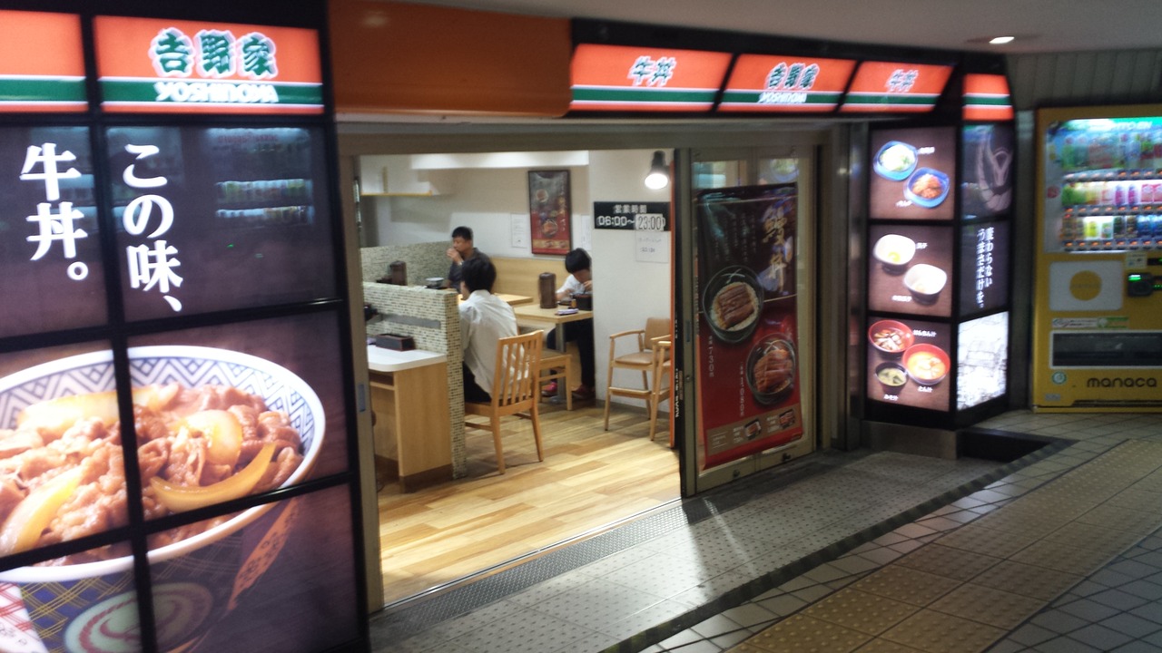 超好立地の吉野家です。名鉄名古屋駅の豊橋方面ホームにあります。営業時間も6時から23時と長く、利便性高いです。価格も普通の吉野家と同じくらいだと思いました。唯一の難点は、店に扉がなく、ホームから店内が丸見えなところだと思いました。
