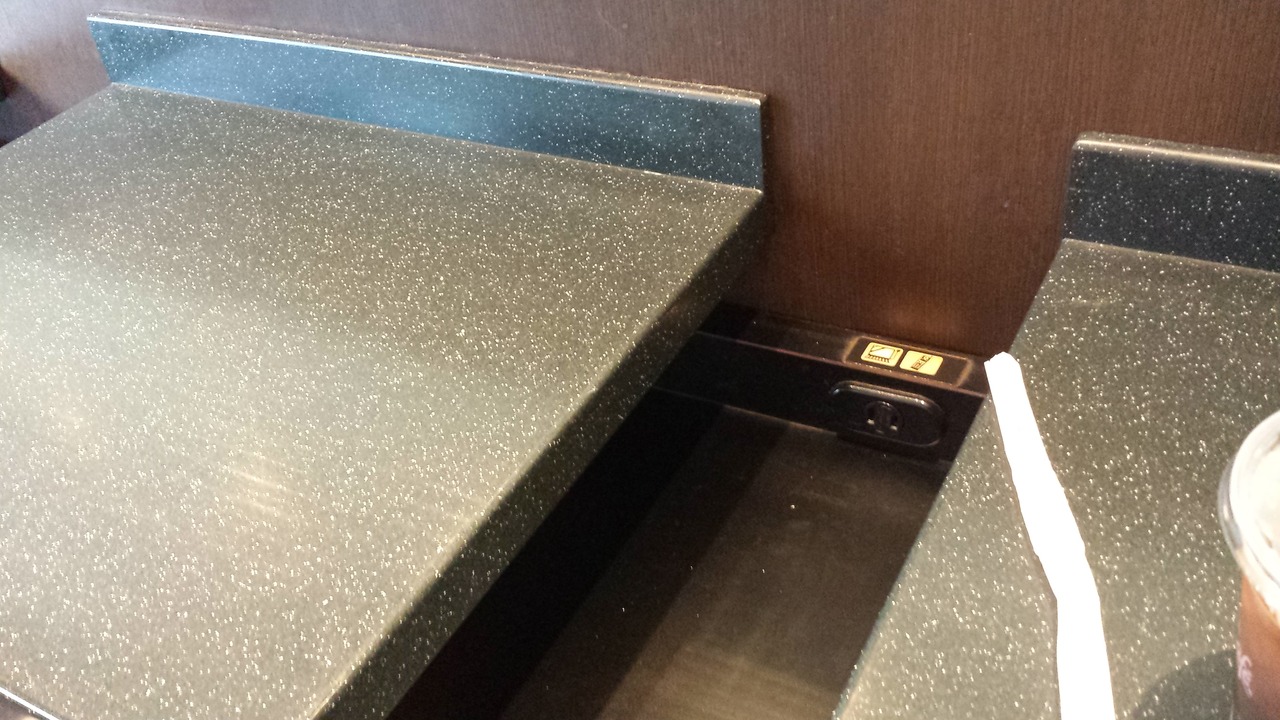 JR広島駅の2階改札目の前にあります。好立地に加え、一人用テーブルには各席とも充電用のコンセントが備わっていて、助かりました。店自体は然程広くありません。メニューもサービスも、もちろん普通のマックです。