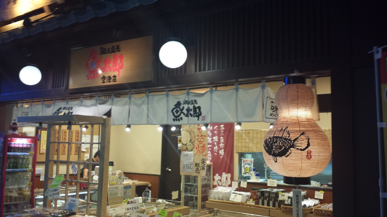 中部国際空港のチェックインカウンター奥から、上階に上がったスカイタウンに入店しています。中央の好立地です。魚の干物や、粕漬けのような加工品が店頭に並んでいます。店の間口が広く、美味しそうな魚が見え、ついつい足を踏み入れたくなります。