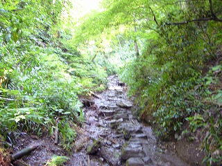 前回1号路で登頂したので、今回は沢沿いの登山路、6号路で登頂しました。途中までは沢に平行する登山路でしたが、後半は沢の上に配された大きな石を渡りながら上っていきました。1号路が舗装された登山路なのに対し、6号路は自然をより感じられる登山路です。