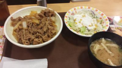 牛丼が260円との安さです。中盛りにサラダ、味噌汁を付けたセットで、500円でお釣りがきました。店員もてきぱきとしていて、こちらから頼まなくても、麦茶を継ぎ足してくれるなど、感じが良かったです。店内も清潔でした。