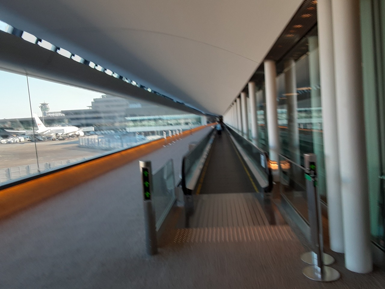 JALなどワンワールド系の航空機が主に発着する空港。今回はシンガポールからの到着便で、コロナ後初の利用。99番駐機場を降り、導線通り進むと、スマホに事前登録していたMY SOSを見せるように指示があり、青色の紙を渡された(=ファーストレーンを利用できる)。そこからまた歩き、検疫カウンターで、再度MY SOSを見せて検疫は終了。自動化ゲートと税関検査を終えた。降機から所要10分強、それほど苦にならずに入国できた。