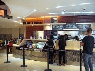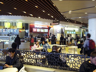 国際線の手荷物検査を経てた後、免税店/レストランエリアのフードコートに入店しています。フードコートの6店くらいのうち、唯一行列ができていました。中華弁当で、おかずを2~3品(品数で料金は異なる)選び、ご飯かチャーハンのお弁当になります。もの凄い美味しいわけではありませんが、日本人には食べ易いです。