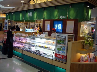チェックインカウンター奥のエスカレーターで4Fに登ると、第一列目の目立つところにあります。デパートとかに入店している京樽と同じで、テイクアウト専門店となっています。お寿司のほか、お茶なども販売していました。