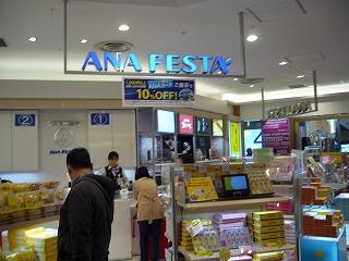 チェックインカウンター奥のエスカレーターで登ったところにあります。訪問先への手土産にぴったりのお菓子を揃えています。ANAカードで購入すると10%割引になります。なお、白い恋人でしたら、出国審査後のANA免税店でも購入できます。