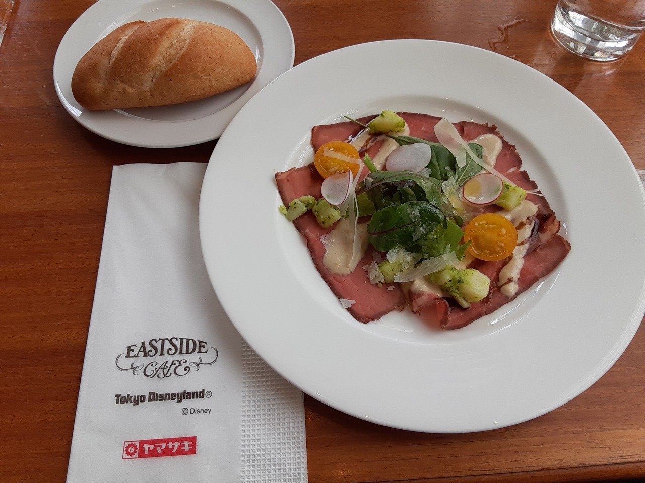 3月に、コロナ禍で入場制限が敷かれているときに訪問。レストランも予約制で、当日アプリから予約した。予約時間に行き、5分ほど順番待ちをして案内された。前菜のローストビーフとパスタ、パンのランチセットを注文。お店の雰囲気は、カジュアルなカフェレストランのよう。おいしく、ボリュームもまずまず。感染対策もしっかりしていて、さすがディスニーリゾートと感じた。