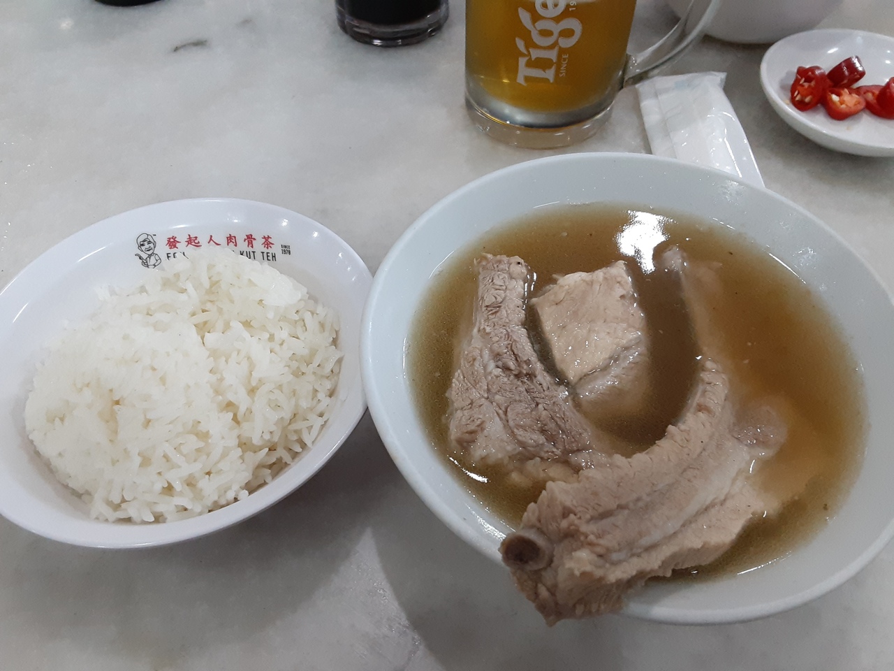 夜中12時までやっているのがうれしい。バクテーのスープは、一般的な味付けよりコショウが効いている。スープはお替り自由で、継ぎ足されるときによって、コショウの辛さが違うが、これが癖になって止まらない。ごはんと野菜とバクテーで、大満足。ローカルっぽさも感じつつ、美味しくいただきました。