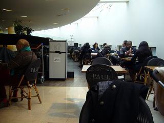 ターミナル2Eの1番チェックインカウンター横にあるPAULを利用しました。カウンターで陳列棚からパンを選び、コーヒーを持って奥の席へ。ファーストフード店と同じ要領です。金額は、豪華なセットで10ユーロ、私が頼んだパン+コーヒーで5ユーロくらいでした。席は清潔で快適でした。