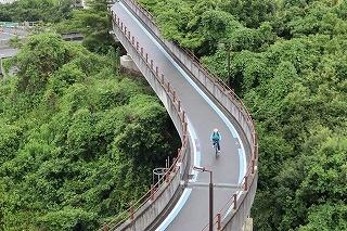 広島/尾道と愛媛/今治間の島々を結ぶ道。高速道路の橋を利用しながら、サイクリング道も整備されています。青い線に沿って走っていけば、迷わずゴールにたどり着けるようになっています。サイクリング道はクルマも少なく絶景続き。橋を渡るためのアップダウンが、ハードですが、サイクリングのアクセントになって楽しかったです。
