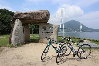 生口島から多田羅大橋を渡り、大三島に入って直ぐのところにある公園。道の駅も併設されていて広々したエリアだった。そして、公園北側には「サイクリストの聖地」碑があり、多田羅大橋をバックに記念撮影して楽しめた。