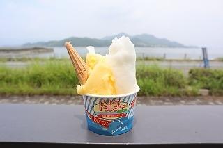 柑橘栽培がさかんな生口島にあるジェラード店。店は海沿いにあり、こじんまり可愛い造り(大型バスも泊まれるように駐車場は広大)。店内のテーブル席のほかテラス席もある。ジェラードは、レモンやデコポンといった地元柑橘類のほか、伯方の塩バニラも。サイクリング途中に立つより、冷たくて美味しかったです。