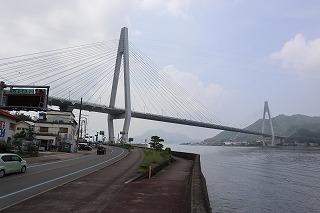 しまなみ海道のサイクリングで利用。尾道から向島は渡し舟での移動が一般的なので、この向島から因島に渡る因島大橋が、実質最初の橋となる。自転車専用レーンで橋の高さまで登るのがしんどいが、そこを過ぎれば絶景。因島大橋は、自動車道と、自転車道が上下の2階建てになっていて、日差しも避けられました。