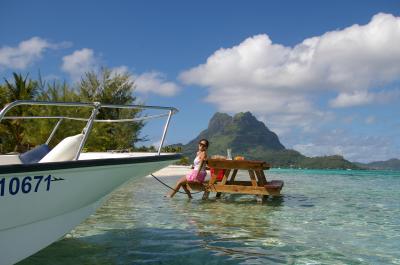 値は張りますが、一生の思い出になりました。約5時間のクルーズで、途中に昼食が入ります。定番スポットに連れて行ってくれますが、プライベートですので、もちろん行先は自由です。私たちは過去4回のボラボラ旅行で、毎回お願いしています。