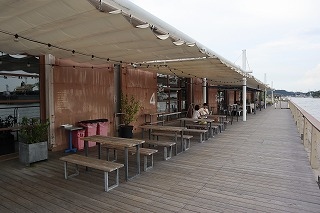 尾道駅から海沿いの遊歩道を歩いて5分ほど。外見は古い倉庫でしかないが、敷地内はシックでオシャレ。敷地内の半面は「ホテルサイクル」で、宿泊者のみ入れるエリア。残りはサイクルショップやレストラン、ベーカリーなどが入店している。内部もオシャレ空間で外部とは別世界のようであったが、海沿いのテラス席も、道路から離れているため静かで落ち着いた空間で良かった。