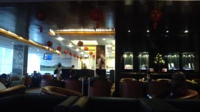 ビジネスクラスラウンジ。席間のスペースなどは他空港や他社のビジネスラウンジと大差なく、少し詰め込んだ感じがありますが、食事/ドリンクが充実。ビュッフェの出来立てのホットミールも多数あるうえ、ドリンクはバーテンダーがその場で作って席まで届けてくれました。総じて好印象でした。