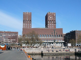出張の週末で、街歩きの中で立ち寄りました。ノーベル平和賞の授与式が行われる場所として有名なようです。内部も巨大油絵とかがあり、見所ありますが、印象的だったのは市庁舎目の前の海です。並が全く無く、黒い水面が鏡面のようになっており、市庁舎の重厚な景観とのコントラストが面白かったです。