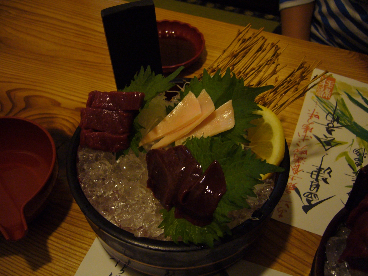 会津名物の馬肉コースをトライしました。一番おいしかったのは、前半戦で出てきた馬肉の刺身3点盛り。魚よりも歯ごたえや味がしっかりあり、臭くない。絶品でした。後半の名物桜鍋も美味しかったが、肉があっさりしている分、牛や豚の鍋ほどコクがなく、印象は薄め。サービスも良く、行ってよかったです。
