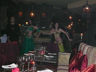 レバノン料理店です。マメなどをペーストしたものがたくさんあり、せんべいみたいなパン?に乗せながら食べました。不味くはないが、日本人にはなじみ難いかもしれません。店内は、イスラムムード満載です。所定の時間になると、民族衣装に身をまとったダンサーが、店内を回りながら踊ってくれます。