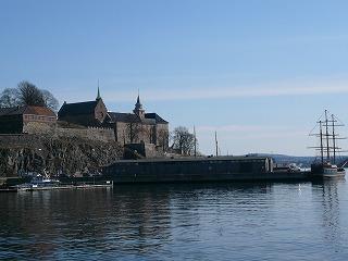 市庁舎前広場からの眺めが印象的でした。広場はフェリー乗り場に面しています。入り江ということもあるのでしょうが、海面は波が無く、黒い鏡面のよう。この黒い海面越しに見える城砦はフォトジェニックで、とても印象的でした。
