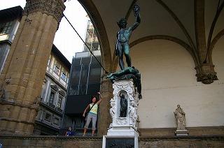 シニョリーア広場一角のオープンスペースにあります。屋根はありますが、特に敷居はなく、誰でも入れる、もしくは触れるような感じで、無造作に展示しています。ただ展示物は、なかなか力感がある人物の彫刻たちです。これが美術館でもなく、広場の一角に展示されているあたり、フィレンツェの凄さを感じました。